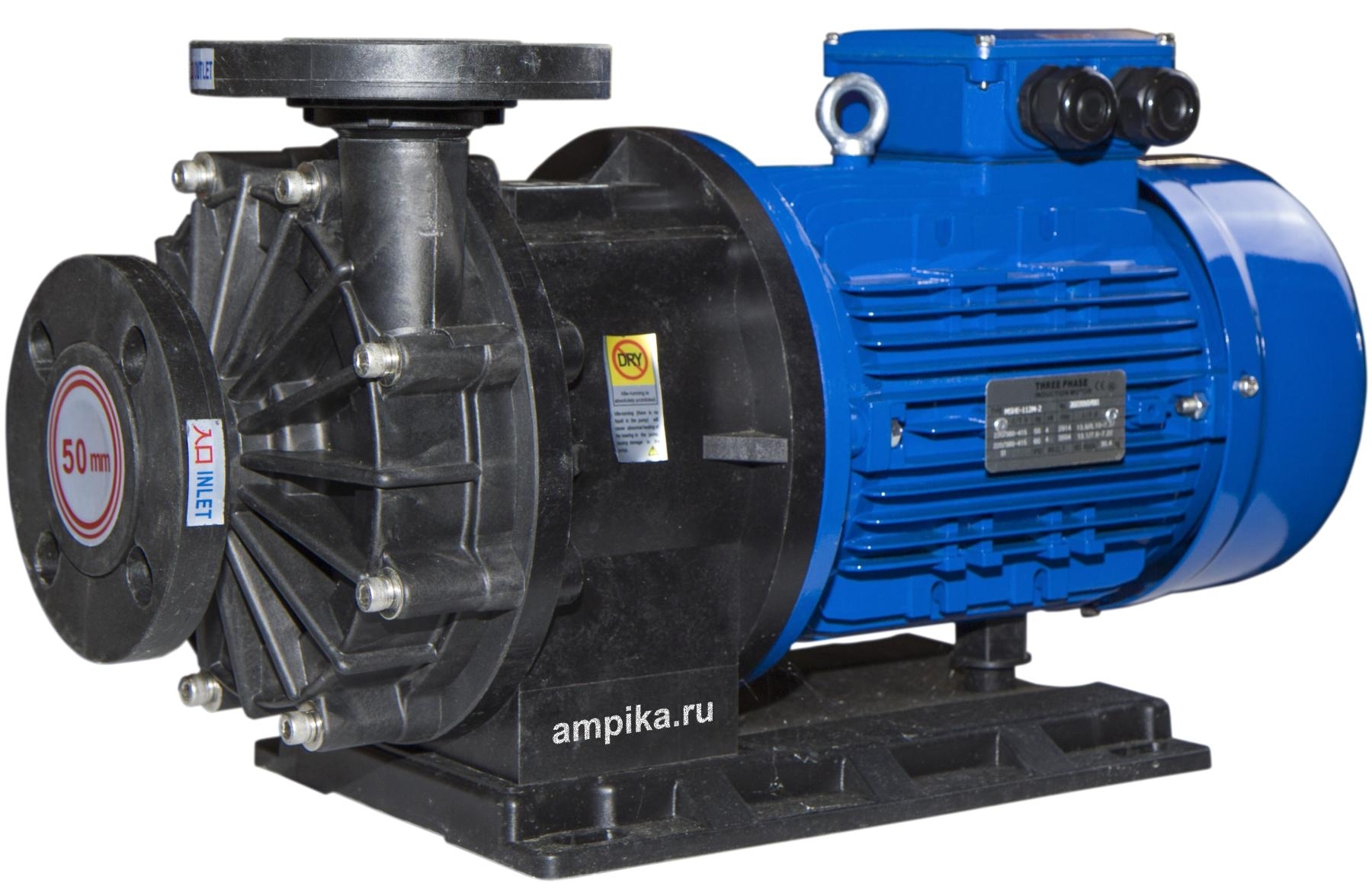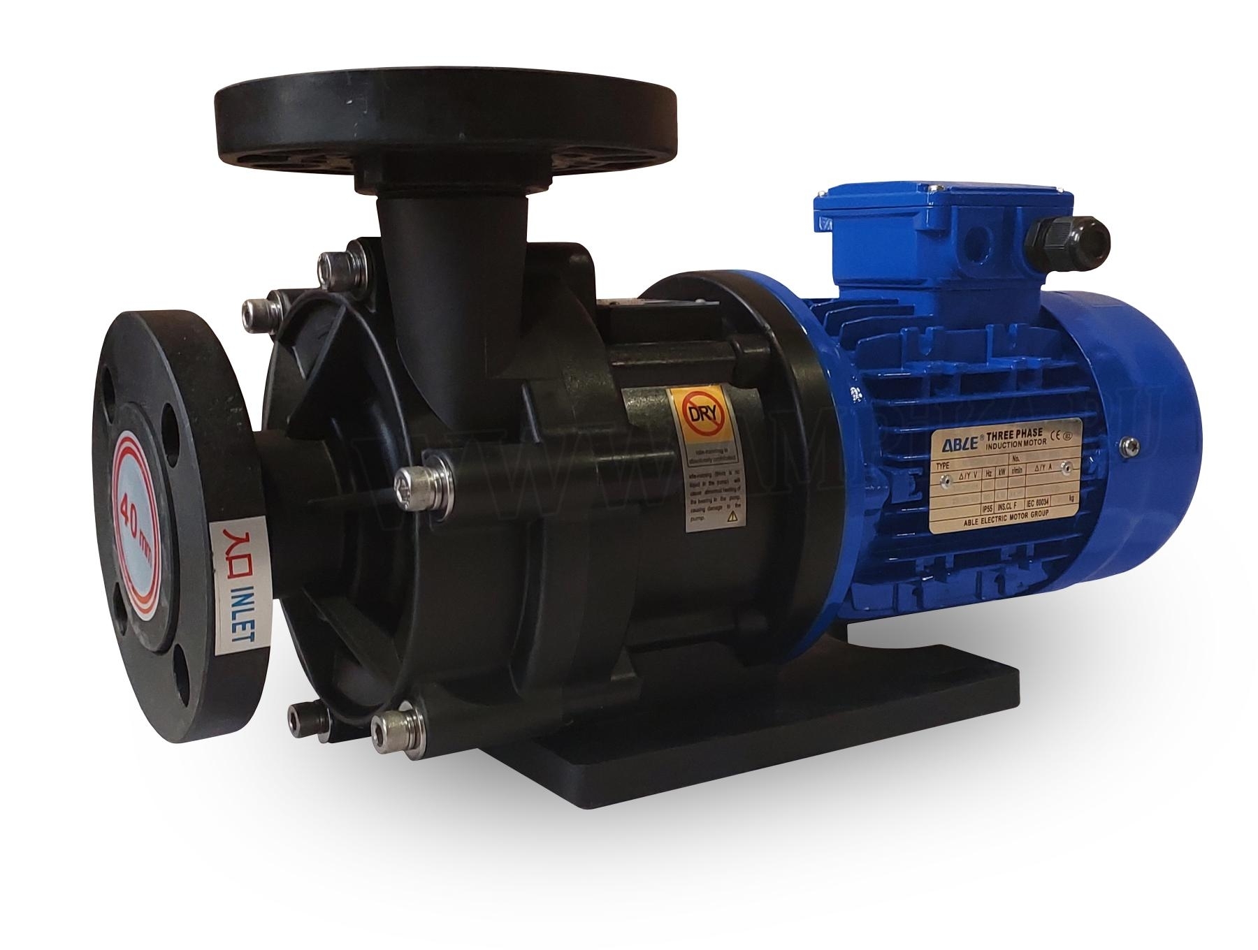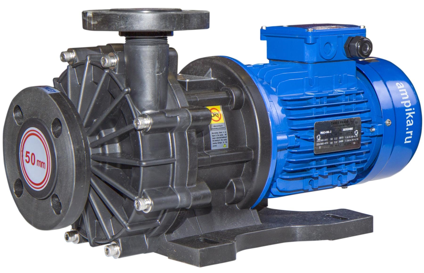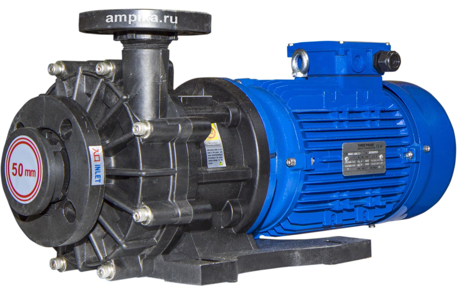 1ХМ 6,3/10ПП-0,55-фл (1,5)Центробежные герметичные (без традиционных уплотнений вала) химические насосы с магнитной муфтой серии ХМ предназначены для перекачивания химически активных жидкостей с плотностью до 1800 кг/м³ (зависит от мощности э/д), вязкостью до 50 сСт и концентрацией взвешенных частиц не более 1,25 мг/куб.см, с удельным объёмным электрическим сопротивлением менее 105 Ом×м, не оказывающих разрушающего воздействия на материалы проточной части насоса. Пара трения: - насос из PP: вал - керaмика, втулка - карбид кремния (SSIC). - насос из CFRETFE (этилен-тетрафторэтилен, аналог тефлона), PVDF: вал, втулка - карбид кремния (SSIC). Прокладки корпуса - витон (возможна замена на EPDM). Запрещается перекачка жидкостей с металлическими включениями!!! Рабочая температура: - с корпусом из стеклонаполненного полипропилена (PP) - исполнение "П" - от 0°С до +70°С, - с корпусом из стеклонаполненного фторопласта (PVDF) - исполнение "Ф" - от -30°С до +90°С, - с корпусом из стеклонаполненного CFRETFE - исполнение "Т" - от -30°С до +90°С. Расшифровка маркировки на примере насоса ХМ-4/20П-1,1-фл-(1,8)-ЗСХ: «ХМ» - химический моноблочный с магнитами из ферросплава, «1ХМ» - химический моноблочный с неодимовыми магнитами (для повышенной вязкости жидкости), «4» - подача в средней рабочей точке, м³/час, «20» - напор в средней рабочей точке, м, «П» - материал проточной части: «П» - полипропилен, «Ф» - фторопласт, «Т» - ETFE, «1,1» - мощность электродвигателя, кВт, «фл» - фланцевое исполнение по входу/выходу, «1,8» - максимальная плотность жидкости в г/см³, «ЗСХ» - с защитой от сухого хода. Насосы ХМ 12,5/20П(Т)-2,2-фл, ХМ20/30П-5,5-фл - до плотности 1,5 г/см³. Насосы ХМ 20/20Ф-4,0-фл, ХМ 20/30П-5,5-фл - до плотности 1,7 г/см³. Насосы ХМ 12/25П(Т)-4,0-фл - до плотности 1,8 г/см³. ВНИМАНИЕ!!! Насос должен работать только под заливом! Работа "на сухую" приведет к разрушению проточной части. Возможна установка защиты от сухого хода (см. таблицу). Данный блок монтируется и настраивается в нашей компании при покупке вместе с насосом. ОТДЕЛЬНО от насоса блок защиты от сухого хода продается только без гарантии. Дополнение к описанию: Небольшой промышленный химический моноблочный насос 1ХМ 6,3/10ПП-0,55-фл (1,5). Проточная часть этого насоса изготовлена из гомоплимера полипропилена, что обеспечивает относительно низкую цену. Электродвигатель трёхфазный, общепромышленного исполнения, мощностью 550 ватт. Рабочие параметры этого насоса: подача 100 литров в минуту с создаваемым давлением 1 атм. Максимальная подача: 220 литров в минуту. Максимальное создаваемое давление: 1,2 атм. График производительности - на последней картинке. Примеры перекачиваемых этим насосом жидкостей: солевой насыщенный раствор, формалин, серная кислота до 10% концентрацией, деминерализованная вода, 10% раствор медного купороса, 25% раствор глицина, 25% раствор аммиака, 10% сульфаминовая кислота, 5% раствор сульфата алюминия Al2(SO4)3. Расшифровка маркировки 1ХМ 6,3/10ПП-0,55-фл (1,5) «1ХМ» - химический моноблочный, с неодимовыми магнитами (для повышенной вязкости жидкости) «6,3» - подача в средней рабочей точке, м3/час «10» - напор в средней рабочей точке, м «ПП» - материал проточной части гомополимер полипропилена (PPH), «0,55» - мощность электродвигателя, кВт, «фл» - фланцевое исполнение по входу/выходу, «1,5» - максимальная плотность жидкости в г/см3. Другие модели этого типа