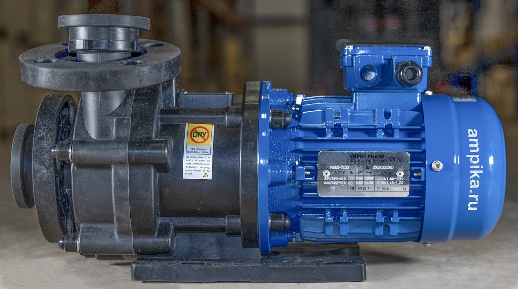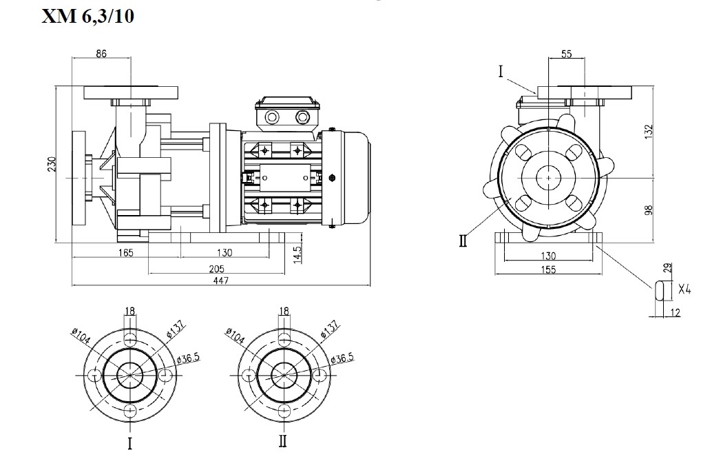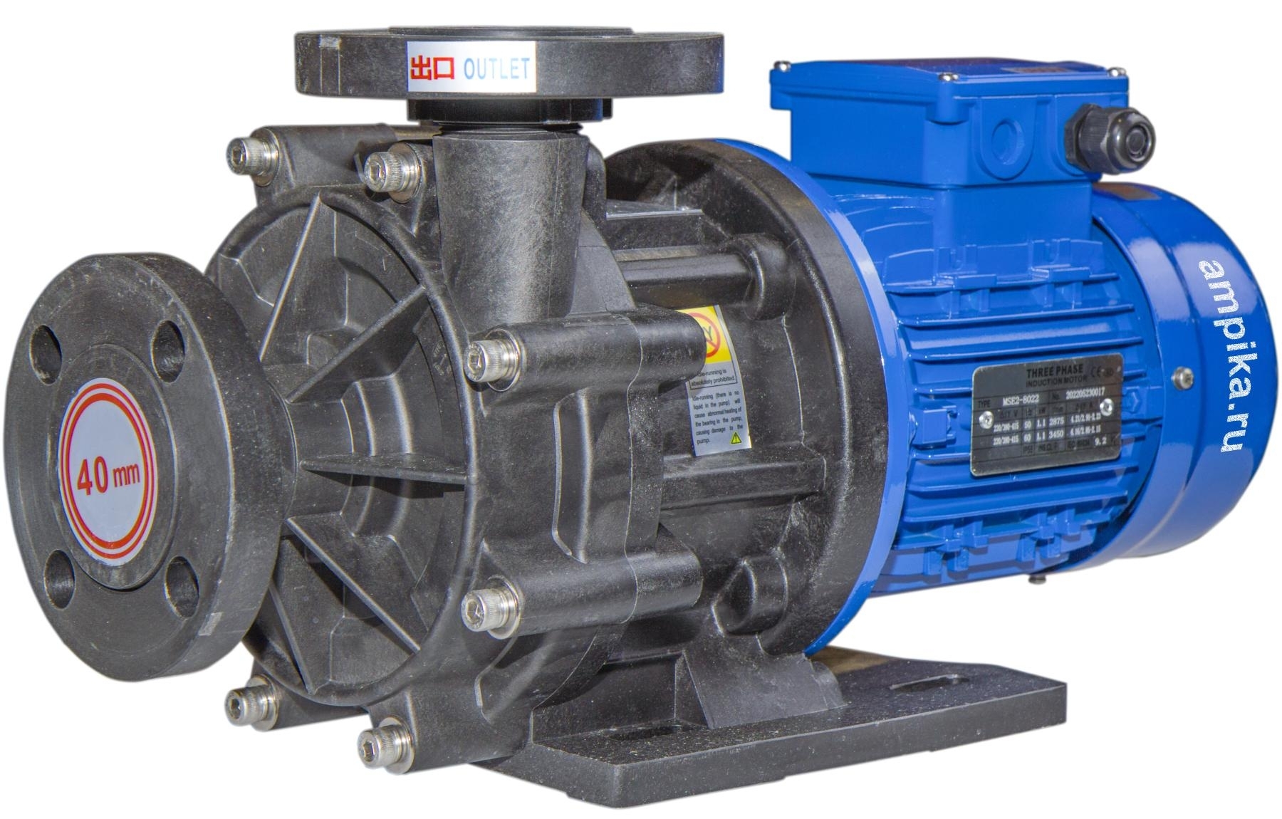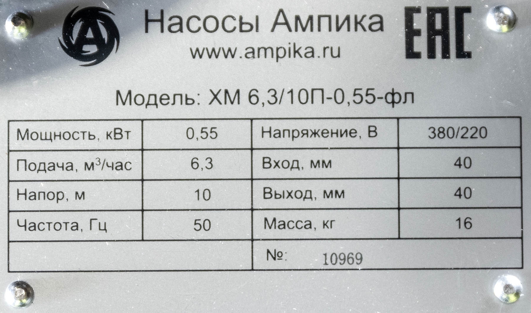 1ХМ 6,3/10ПП-0,55-фл (1,5)Центробежные герметичные (без традиционных уплотнений вала) химические насосы с магнитной муфтой серии ХМ предназначены для перекачивания химически активных жидкостей с плотностью до 1800 кг/м³ (зависит от мощности э/д), вязкостью до 50 сСт и концентрацией взвешенных частиц не более 1,25 мг/куб.см, с удельным объёмным электрическим сопротивлением менее 105 Ом×м, не оказывающих разрушающего воздействия на материалы проточной части насоса. Пара трения: - насос из PP: вал - керaмика, втулка - карбид кремния (SSIC). - насос из CFRETFE (этилен-тетрафторэтилен, аналог тефлона), PVDF: вал, втулка - карбид кремния (SSIC). Прокладки корпуса - витон (возможна замена на EPDM). Запрещается перекачка жидкостей с металлическими включениями!!! Рабочая температура: - с корпусом из стеклонаполненного полипропилена (PP) - исполнение "П" - от 0°С до +70°С, - с корпусом из стеклонаполненного фторопласта (PVDF) - исполнение "Ф" - от -30°С до +90°С, - с корпусом из стеклонаполненного CFRETFE - исполнение "Т" - от -30°С до +90°С. Расшифровка маркировки на примере насоса ХМ-4/20П-1,1-фл-(1,8)-ЗСХ: «ХМ» - химический моноблочный с магнитами из ферросплава, «1ХМ» - химический моноблочный с неодимовыми магнитами (для повышенной вязкости жидкости), «4» - подача в средней рабочей точке, м³/час, «20» - напор в средней рабочей точке, м, «П» - материал проточной части: «П» - полипропилен, «Ф» - фторопласт, «Т» - ETFE, «1,1» - мощность электродвигателя, кВт, «фл» - фланцевое исполнение по входу/выходу, «1,8» - максимальная плотность жидкости в г/см³, «ЗСХ» - с защитой от сухого хода. Насосы ХМ 12,5/20П(Т)-2,2-фл, ХМ20/30П-5,5-фл - до плотности 1,5 г/см³. Насосы ХМ 20/20Ф-4,0-фл, ХМ 20/30П-5,5-фл - до плотности 1,7 г/см³. Насосы ХМ 12/25П(Т)-4,0-фл - до плотности 1,8 г/см³. ВНИМАНИЕ!!! Насос должен работать только под заливом! Работа "на сухую" приведет к разрушению проточной части. Возможна установка защиты от сухого хода (см. таблицу). Данный блок монтируется и настраивается в нашей компании при покупке вместе с насосом. ОТДЕЛЬНО от насоса блок защиты от сухого хода продается только без гарантии. Дополнение к описанию: Небольшой промышленный химический моноблочный насос 1ХМ 6,3/10ПП-0,55-фл (1,5). Проточная часть этого насоса изготовлена из гомоплимера полипропилена, что обеспечивает относительно низкую цену. Электродвигатель трёхфазный, общепромышленного исполнения, мощностью 550 ватт. Рабочие параметры этого насоса: подача 100 литров в минуту с создаваемым давлением 1 атм. Максимальная подача: 220 литров в минуту. Максимальное создаваемое давление: 1,2 атм. График производительности - на последней картинке. Примеры перекачиваемых этим насосом жидкостей: солевой насыщенный раствор, формалин, серная кислота до 10% концентрацией, деминерализованная вода, 10% раствор медного купороса, 25% раствор глицина, 25% раствор аммиака, 10% сульфаминовая кислота, 5% раствор сульфата алюминия Al2(SO4)3. Расшифровка маркировки 1ХМ 6,3/10ПП-0,55-фл (1,5) «1ХМ» - химический моноблочный, с неодимовыми магнитами (для повышенной вязкости жидкости) «6,3» - подача в средней рабочей точке, м3/час «10» - напор в средней рабочей точке, м «ПП» - материал проточной части гомополимер полипропилена (PPH), «0,55» - мощность электродвигателя, кВт, «фл» - фланцевое исполнение по входу/выходу, «1,5» - максимальная плотность жидкости в г/см3. Другие модели этого типа
