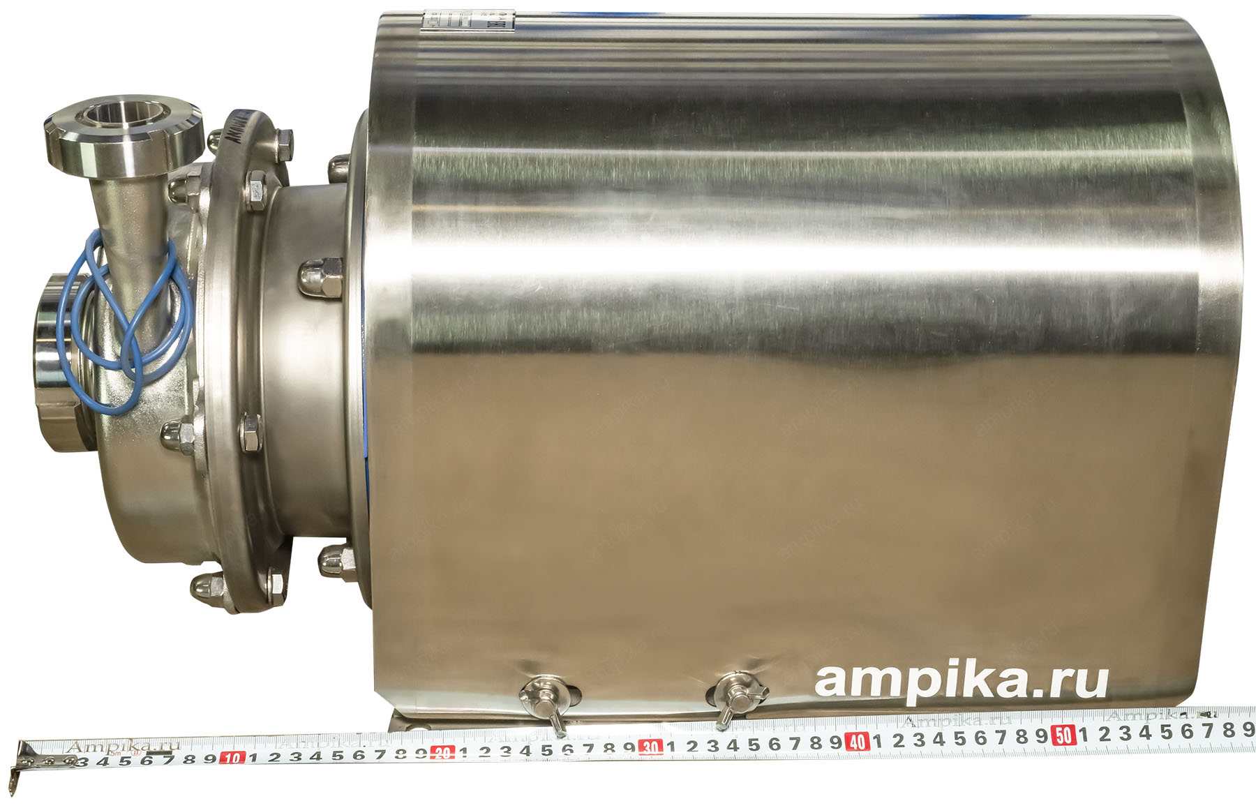 Цена с НДС 133300 ₽ Область применения: электронасосы центробежные серии ОНЦ предназначены для перекачивания молока и сходных с ним по вязкости и химической активности пищевых продуктов, соляных растворов, а также слабоагрессивных жидкостей с водородным показателем pH 5..10, и прочих нейтральных жидкостей (спирт, вино, пиво, соки, химические реактивы) с температурой не выше +105 °С (возможно изготовление до +140 °С). Концентрация механических примесей не должна превышать 0,1% по объёму, максимальный размер частиц – 0,2 мм. Поставляются как с нержавеющим кожухом на электродвигателе (написано "с кожухом"), так и без него. Рабочая камера перед пуском электронасоса в работу должна быть заполнена перекачиваемой жидкостью. По конструкции электронасосы одноступенчатые и смонтированы на фланце электродвигателя, с рабочим колесом открытого или закрытого типа. На электронасосах серии ОНЦ установлены торцевые уплотнения валов сильфонного типа. Материал проточной части: Корпус насоса, рабочее колесо, крышка корпуса, втулка вала, гайка колеса - из нержавеющей стали 12Х18Н10Т. Электродвигатель: по умолчанию электродвигатель насоса фланцевый или комбинированный общепромышленного исполнения. При комплектации двигателями во взрывозащищённом исполнении насосы можно использовать для перекачивания спирта, водки. Возможна комплектация рубашкой парового или электрообогрева, кожухом электродвигателя из нержавеющей стали, двойным торцевым уплотнением с автономным охлаждением. Дополнение к описанию: Высоконапорный промышленный центробежный пищевой насос из нержавеющей стали ОНЦ 6,3/50К5-5,5/2 (с кожухом). Пищевой насос с кожухом из нержавейки, с пищевым сертификатом. Электродвигатель общепромышленный трёхфазный, на 380 вольт, мощностью 5,5 кВт, закрыт кожухом согласно нормам пищевых производств. Кожух электродвигателя съёмный, крепится четырьмя барашками. Вход-выход - молочные гайки: Ду50 на входе и Ду32 на выходе из насоса. В комплекте идёт запасная прокладка корпуса насоса. Фотографии со склада Ампики в Москве. Другие модели этого типа