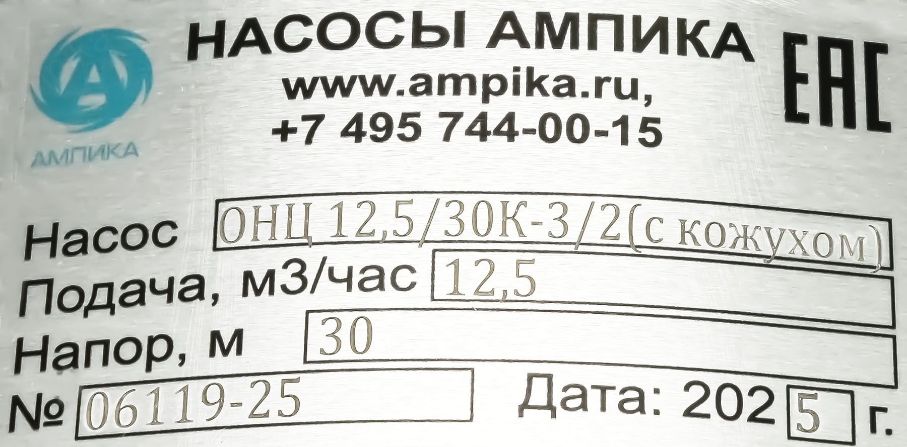 Пищевой центробежный насос ОНЦ 12,5/30К5-3/2 (с кожухом)
