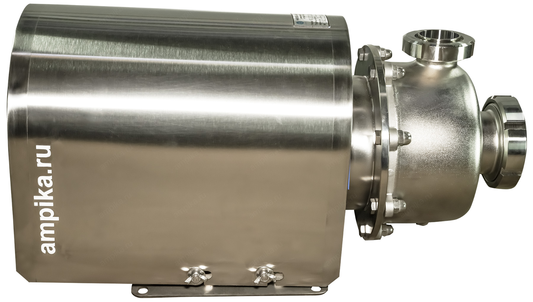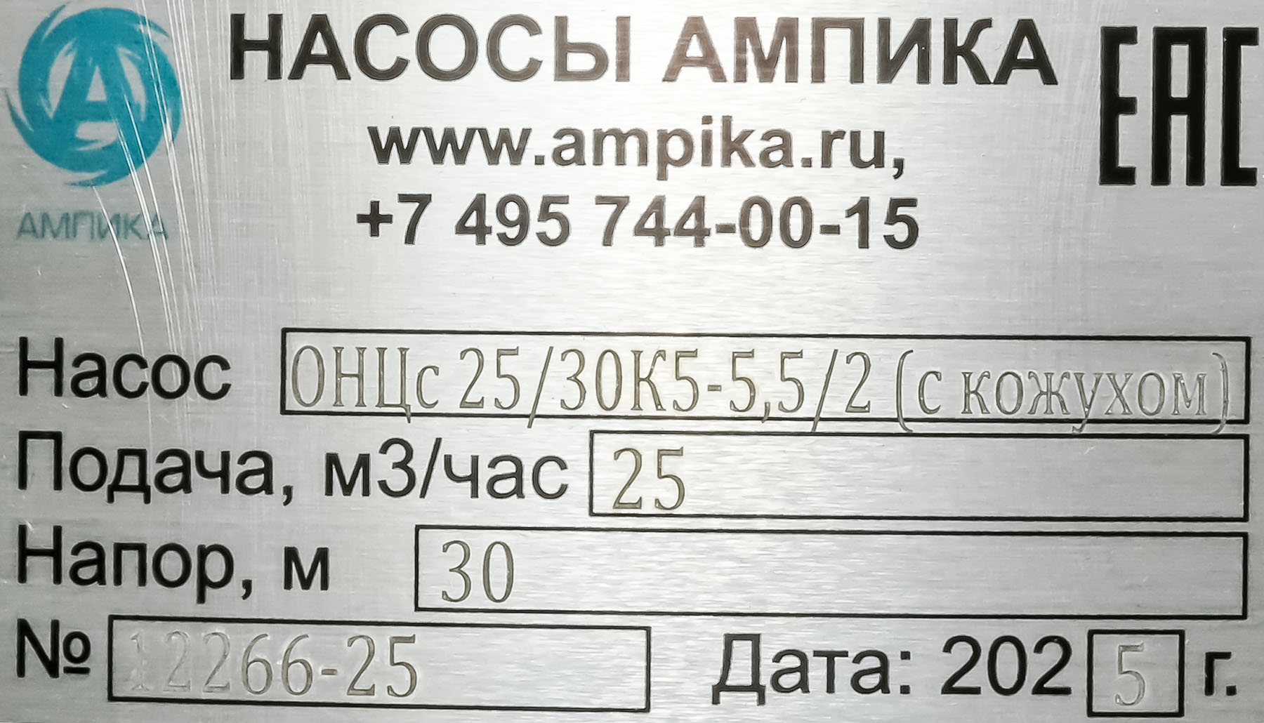 Цена с НДС 149900 ₽ Промышленный центробежный самовсасывающий пищевой насос ОНЦс-25/30К5-5,5/2 (с кожухом) – это моноблочный, горизонтальный, одноступенчатый насосный агрегат. Отличительной особенностью пищевых насосов ОНЦс является возможность всасывать жидкость без предварительного заполнения входной магистрали: для осуществления самовсасывания (выкачивания воздуха из всасывающего трубопровода) достаточно наличия жидкости только в корпусе проточной части насоса. Высота самовсасывания - до 7 метров. ВНИМАНИЕ! Высота самовсасывания зависит от температуры жидкости и её плотности! При подборе насосов всегда консультируйтесь со специалистами Ампики. Насос предназначен для перекачивания подсолнечного масла, вина, пива, соков, а также других пищевых продуктов, сходных с ними по вязкости и плотности. Температура перекачиваемой среды от +4 до +95 ºC (возможно изготовление версии до +140 ºC). Допускается использовать этот электронасос для перекачивания слабокислых и слабощелочных сред (CIP-растворов), обеспечивающих скорость коррозии проточной части не более 0,1 мм/год. Концентрация механических примесей - не более 0,1% по объёму, максимальный размер частиц - 0,2 мм. Электродвигатель трёхфазный общепромышленный, на 380 вольт, мощностью 5,5 кВт. Для защиты электродвигателя от брызг жидкости при мойке оборудования насос комплектуется защитным кожухом из нержавеющей стали. Это требуется на пищевых производствах. Уплотнение вала - одинарное торцевое (возможно изготовления с двойным торцевым уплотнением и бачком с затворной жидкостью). Проточная часть выполнена из нержавеющей стали 12Х18Н10Т и AISI304. Патрубки – молочные муфты Ду50, со штуцерами под сварку. При комплектации электродвигателем во взрывозащищённом исполнении, такой насос можно использовать для перекачивания спирта, водки. Цена указана за насос с общепромышленным электродвигателем. В комплекте с насосом идёт одна запасная прокладка корпуса проточной части. Другие модели этого типа