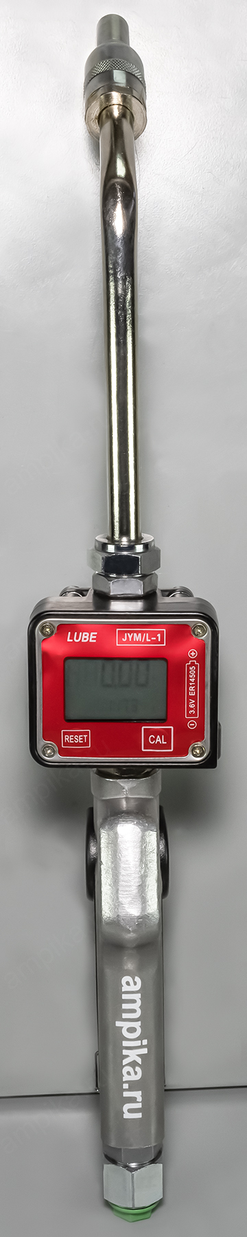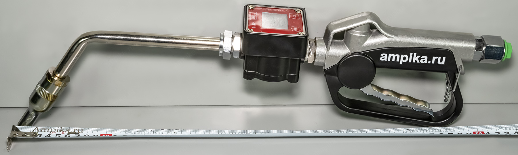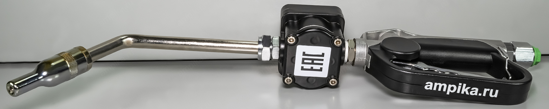 Раздаточный пистолет со счётчиком Ампика JYQ/M-1Пистолет-расходомер JYQ/M-1 предназначен для точного измерения и ручного дозирования заданного количества дизельного топлива, керосина, масел и других невязких жидкостей, по отношению к которым материалы, из которых изготовлен расходомер, устойчивы. Следует учитывать, что жидкие кристаллы дисплея замерзают на морозе. Электронный счётчик JYQ-M-1 снабжён ресурсным указателем общего за его жизнь количества жидкости, которое невозможно обнулить, а также указателем количества жидкости при последнем (или при нескольких последних) измерении, которое всегда можно сбросить на ноль при желании. Принцип действия счётчика - овальные шестерни. Механизм учёта и индикации - электронный. Технические характеристики: • допустимая вязкость жидкости: от 8 до 2000 мПа*с, • диапазон измерения скорости потока - 1-35 л/мин., • цена деления - 0,001 л, • максимальное давление в корпусе счётчика - 70 атм., • рабочая температура - от -10 до +70 градусов цельсия, • точность измерений в рабочем диапазоне: +/- 0,5%. Счётчик имеет возможность калибровки. Пистолет поставляется со встроенной поворотной муфтой. Она позволяет вращать раздаточный кран, не перекручивая питающий шланг. ВНИМАНИЕ! Счётчик не имеет поверки и не внесен в государственный реестр измерительных приборов. В таблице характеристик указан вес и размеры упаковки. Параметры голого пистолета-счётчика: • длина: 520 мм, • ширина: 80 мм, • высота: 130 мм, • вес: 1,3 кг. |