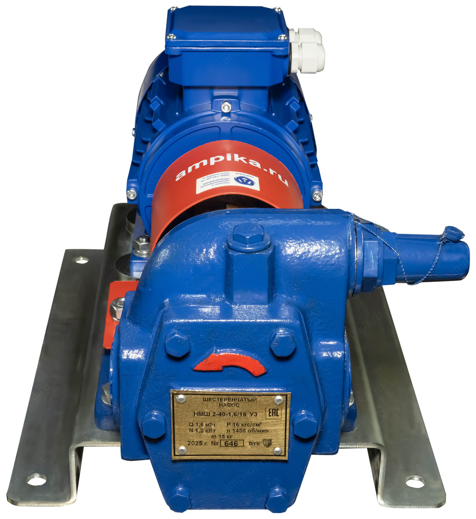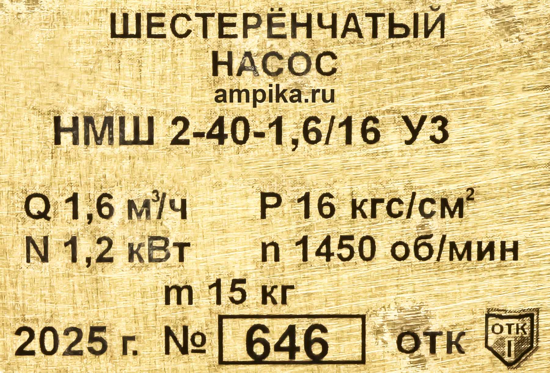 Шестерённый насос Ампика НМШ 2-40-1,6/16 с 1,5 кВтМаксимальная вязкость перекачиваемой жидкости - 2250 сСт. Высота всасывания - до 4,5...5 метров. Насосы типа НМШ и Ш имеют встроенный предохранительный (перепускной, байпасный) клапан, позволяющий отрегулировать в условиях эксплуатации максимальное рабочее давление, создаваемое насосом. Уплотнение вала как правило торцовое. Возможна комплектация взрывозащищёнными электродвигателями. Расшифровка обозначения марки на примере насоса НМШ-2-40-1,6/16(Б)-5: - "НМШ" - насос масляный шестерённый, - "2" - размер проточной части: номинальная подача - 2 литра на 100 оборотов вала, - "40" - наибольшее давление насоса, которое он может развить, - "1,6" - реальная производительность насосного агрегата в м³/час, - "16" - реальное давление насоса в атм., - "Б" - проточная часть из бронзы (по умолчанию - из чугуна - не обозначается) - "-5" или "-10" общепромышленный электродвигатель минимальной или максимальной мощности для такого насоса, - "-1" или "-11" - взрывозащищённый электродвигатель минимальной и максимальной мощности для такого насоса. C 2017 года введена новая маркировка насосов (в марку добавлен "хвост"): НМШ 2-40-1,6/16(Б)-ТВ3-Р1-Ф-Е У2 - "ТВ1" - тип уплотнения и его производитель (цифра): "Т" - одинарное торцевое уплотнение, "ТВ" - одинарное торцевое уплотнение с вспомогательным уплотнением, "ТД" - двойное торцевое уплотнение, "ТТ" - двойное торцевое уплотнение по схеме "тандем", "С" - сальниковое уплотнение, "1" - ГМС Ливгидромаш, "2" - Burgman, "3" - Унихимтек, "4" ТРЭМ Инжиниринг, "5" - Герметика, "6" John Crane, "7" - Аессил, "8" - МегаТехКом, - "Р1"- материал РТИ: "Р1" - резина 3826, "Р2" - резина ИРП-1314, "Р3" - резина СБ-26, "Р4" - другие марки резины, - "Ф" - материал подшипников скольжения: "Б1" - бронза О5Ц5С5, "Б2" - бронза О5С25, "Ф" - алюминий с металлофторопластовым вкладышем, "Гр" - материал на основе углеграфита, "Ю" - сплав В96Ц1Т1, - "Е" - взрывобезопасное исполнение, - "У" - климатическое исполнение по ГОСТ 15150-69, - "2" - категория размещения по ГОСТ 15150-69. Новое окончание насосов в стандартном исполнении: - до +70 ºC: ТВ3-Р1-Ф, - до +150 ºC: ТВ3-Р2-Б1, - до +250 ºC: ТВ1-Р3-Гр. Новое обозначение стандартных насосов НМШ 12-25, НМШ 32-10, Ш3,2-25: - НМШ 32/10-18/6-ТВ3-Р1, - НМШ 3,2/25-1,6/16К-ТВ3-Р1-Б1. ** Насосы НМШ 2/40, 5/25, 8/25 могут быть как ливенскогo, так и подмосковного производства. Дополнение к описанию: Маленький шестерённый промышленный агрегат НМШ-2-40-1,6/16 изготовлен на нашем производстве с общепромышленным двигателем 1,5 кВт. Рабочая часть агрегата НМШ 2-40-1,6/16 - самый маленький насос в линейке НМШ. Номинальные параметры производительности этого насоса - подача 1600 литров в час с давлением 16 атмосфер. В 2025 году мы перешли от сварных рам к цельнотянутым, что позволило снизить вес агрегата на 10 кг. Фотографии сделаны в разное время на нашем складе в Московской области. Более свежие фотографии стоят сначала. Другие модели этого типа