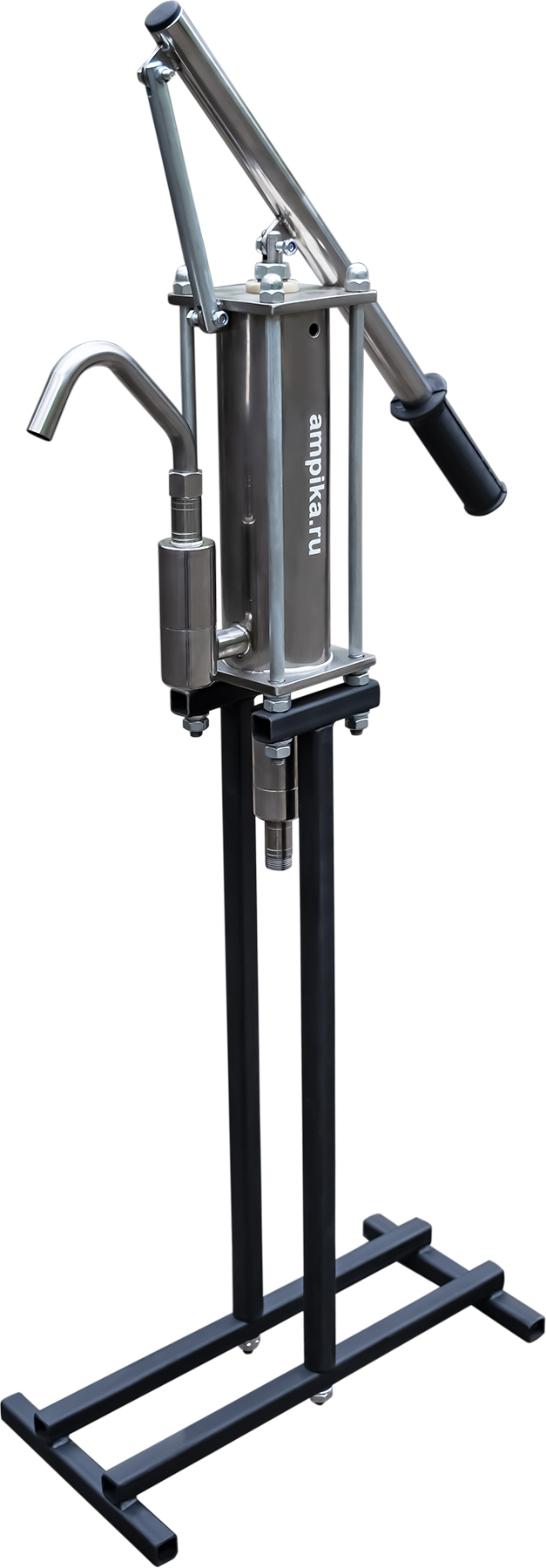 Подставка для НБУ-900Примеры жидкостей: кислоты, растворители, спирты, светлые нефтепродукты, антифризы, вода. Корпус насоса изготовлен из высококачественной нержавеющей стали 12Х18Н10Т, а уплотнение и поршневое кольцо - из фторопласта. Данные материалы имеют высокую коррозионную стойкость и допустимы по нормативам «Роспотребнадзора» для контакта с пищевыми продуктами. Устройство и принцип работы: Насос НБУ-900 - ручной поршневой одноцилиндровый, одностороннего действия. Корпус насоса представляет собой сварную конструкцию, на которой размещен нагнетательный клапан. Всасывающий обратный клапан, идущий в комплекте, может быть расположен как на корпусе насоса, так и на конце всасывающего шланга (просто выворачивается из корпуса и переставляется). Такая установка требуется при всасывании жидкости с большой глубины, например из скважины. Крепление корпуса насоса к штативу (штатной подставке) или любой другой опоре производится 4 гайками М10. Перекачиваемые жидкости не должны содержать механические примеси размером свыше 0,01 мм массовой концентрацией не более 0,025 %. В случае работы с жидкостями, содержащими механические примеси большего размера, необходимо перед обратным клапаном установить фильтр с тонкостью фильтрации 10 мкм. Насос легко разбирается и собирается, что позволяет использовать его в пищевом производстве, где необходима регулярная промывка. Подставку под насос можно приобрести отдельно. Дополнение к описанию: Насос ручной НБУ-900 может использоваться и без подставки, но тогда возникнут трудности с его креплением: лучше не экономить и купить подставку вместе с насосом. Другие модели этого типа