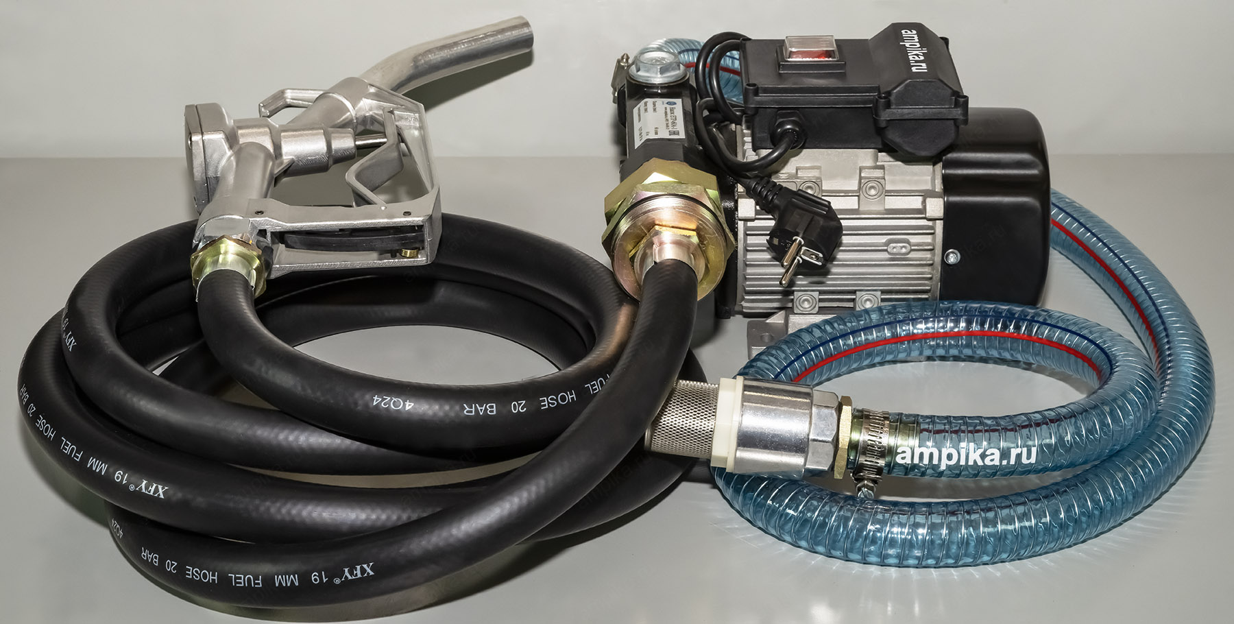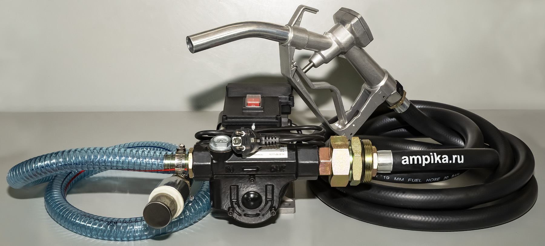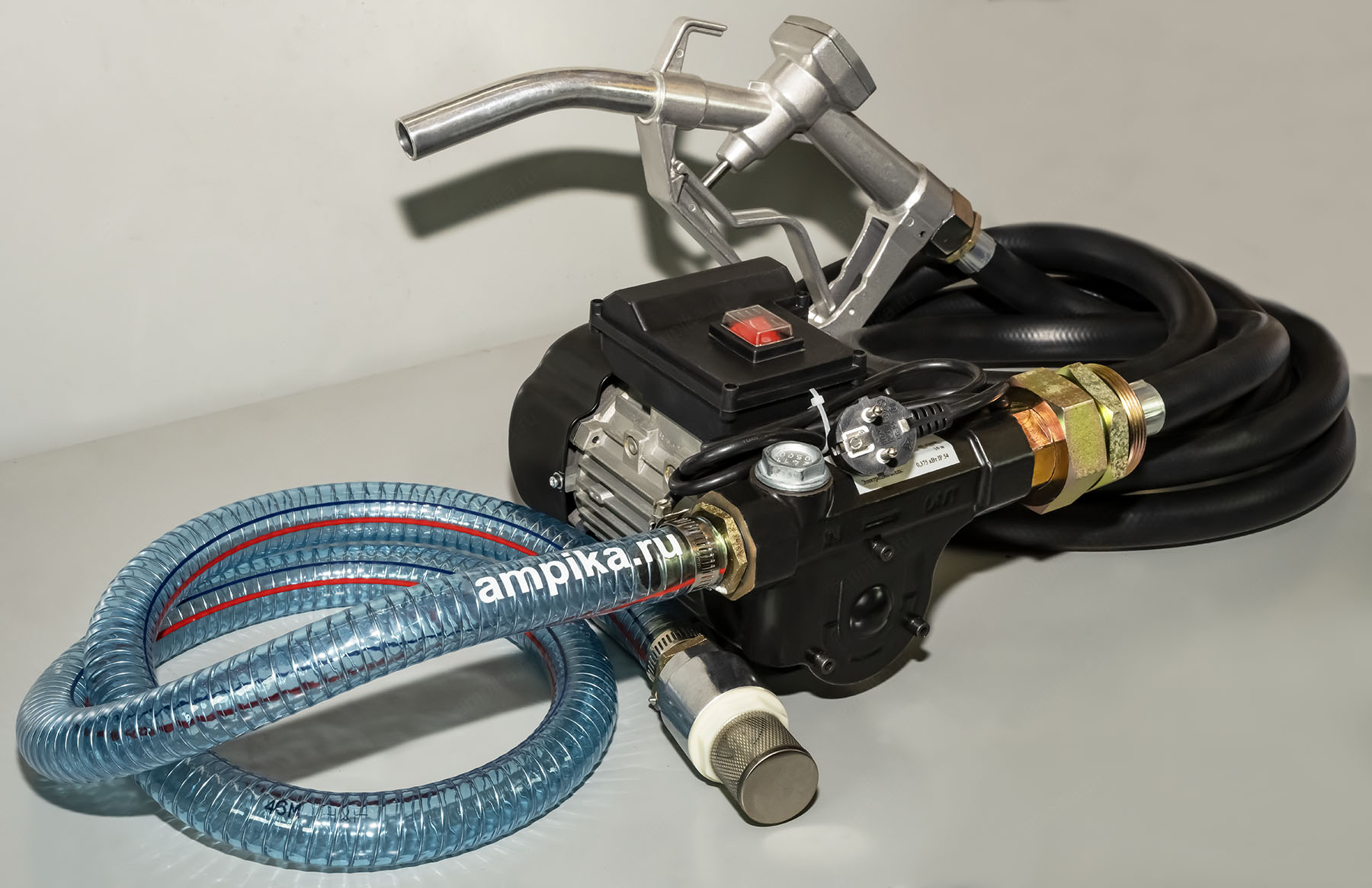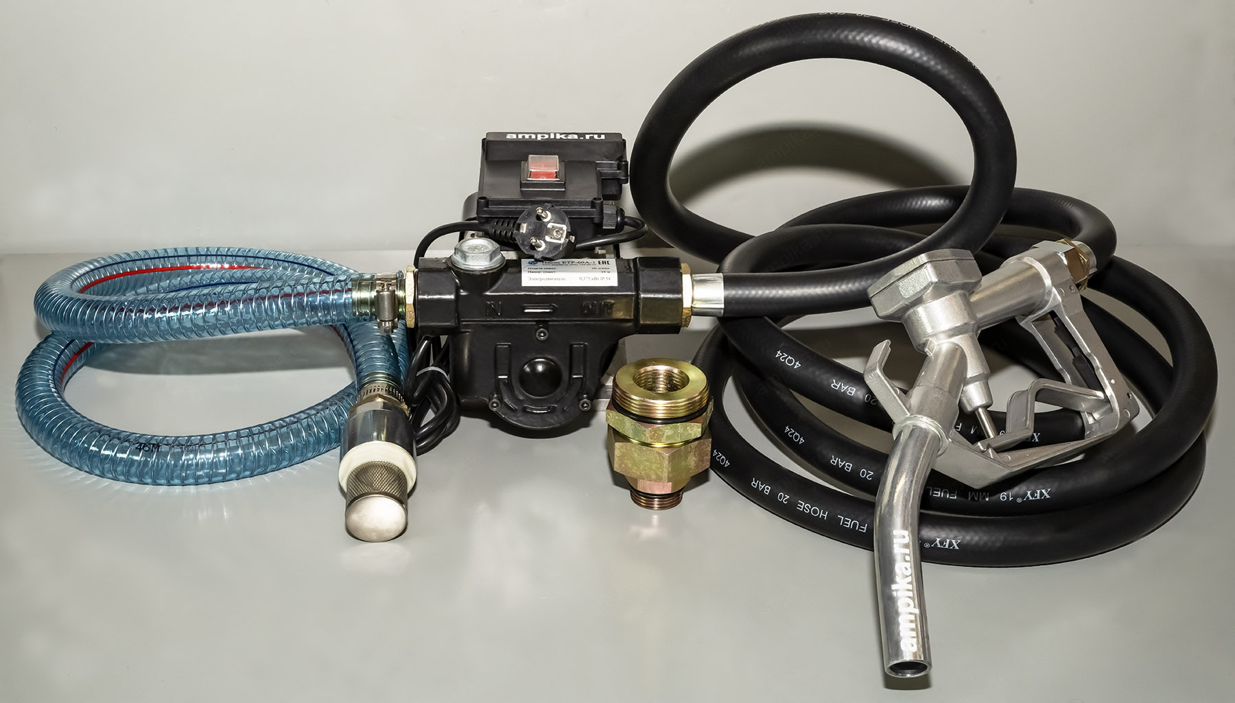 Насос для бочки наружный со шлангами Ампика ETP-60A-1 Универсальная насосная установка ETP-60A-1 изготовлена на базе насоса DB-60 AC220 и предназначена для перекачивания дизельного топлива и жидкого масла (вязкость до 200 сСт) из бочек и емкостей.